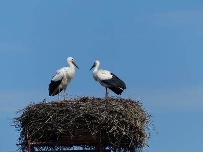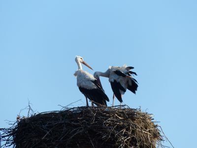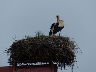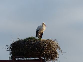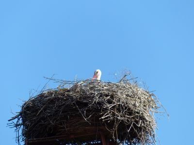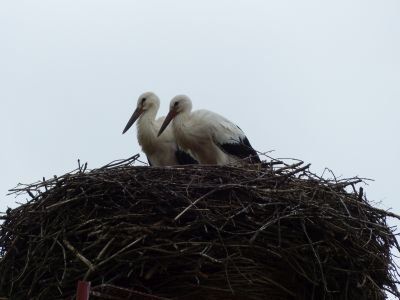 Ungewöhnlich spät ... Frau Storch sitzt auf dem Gelege, gebrütet wird ca. 33- 34 Tage. Die Eier sind dann ca. 110 gr schwer. Die Schale hat eine feine Körnung und ist leicht weiß glänzend.