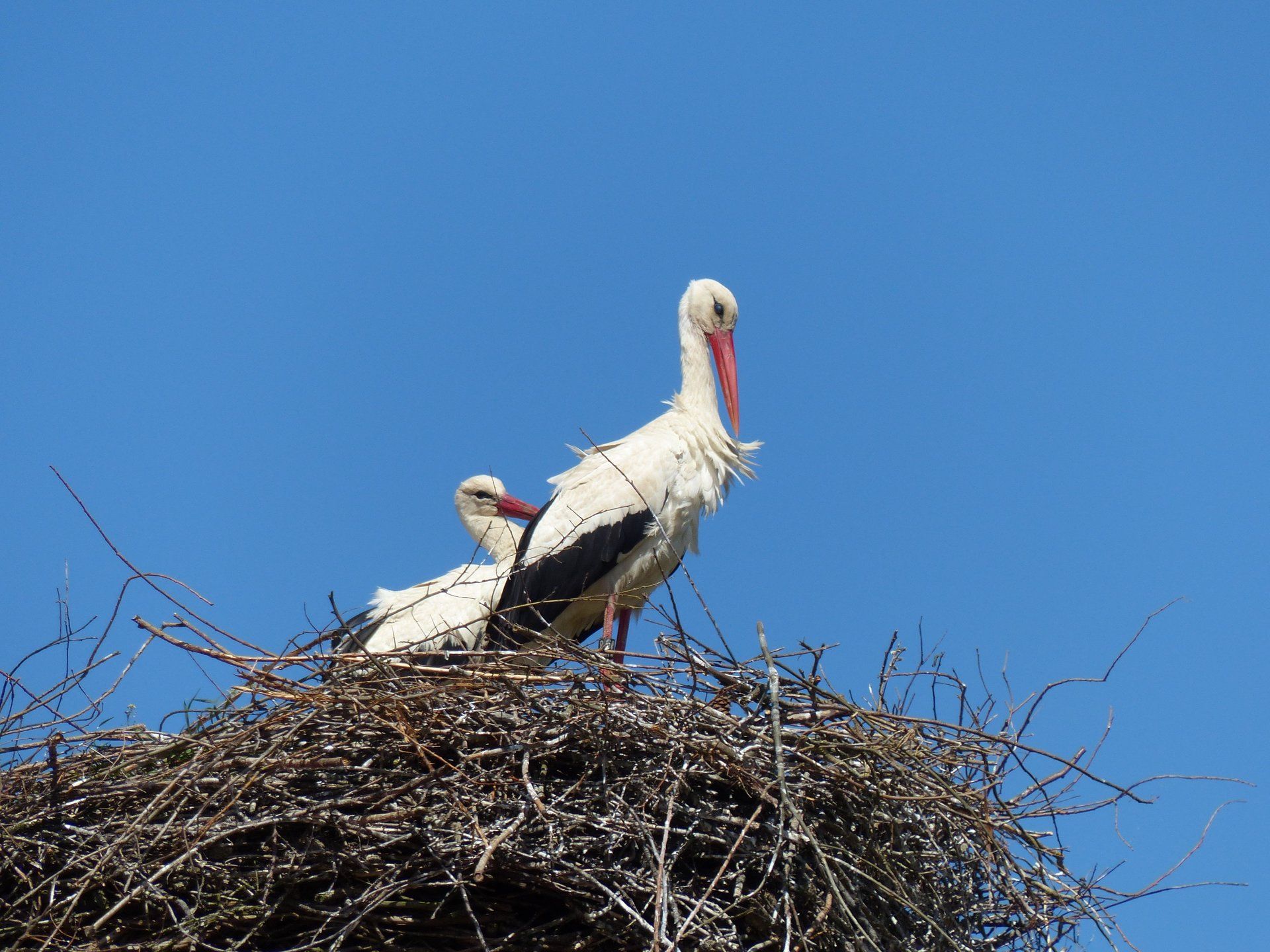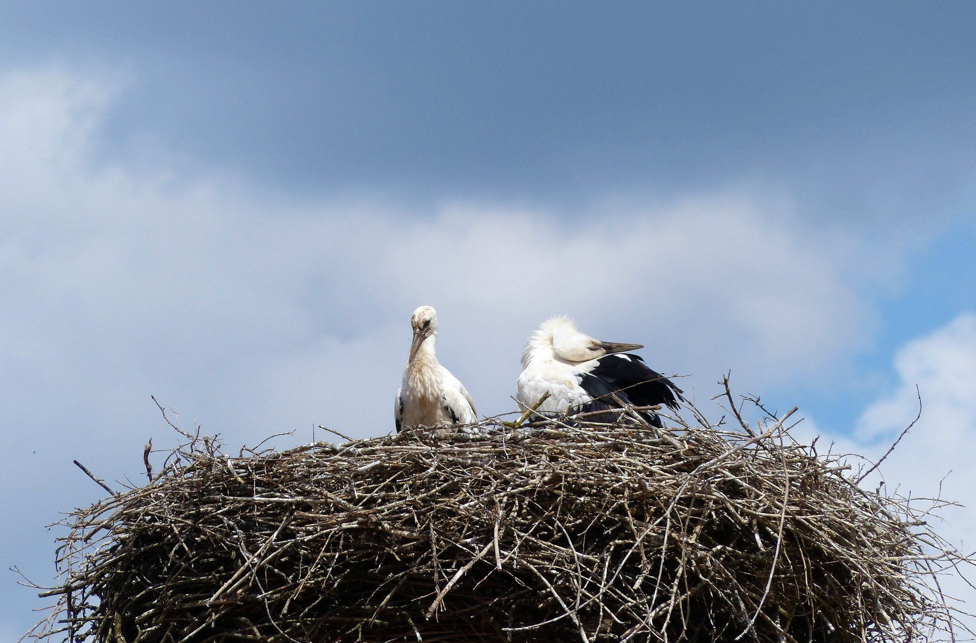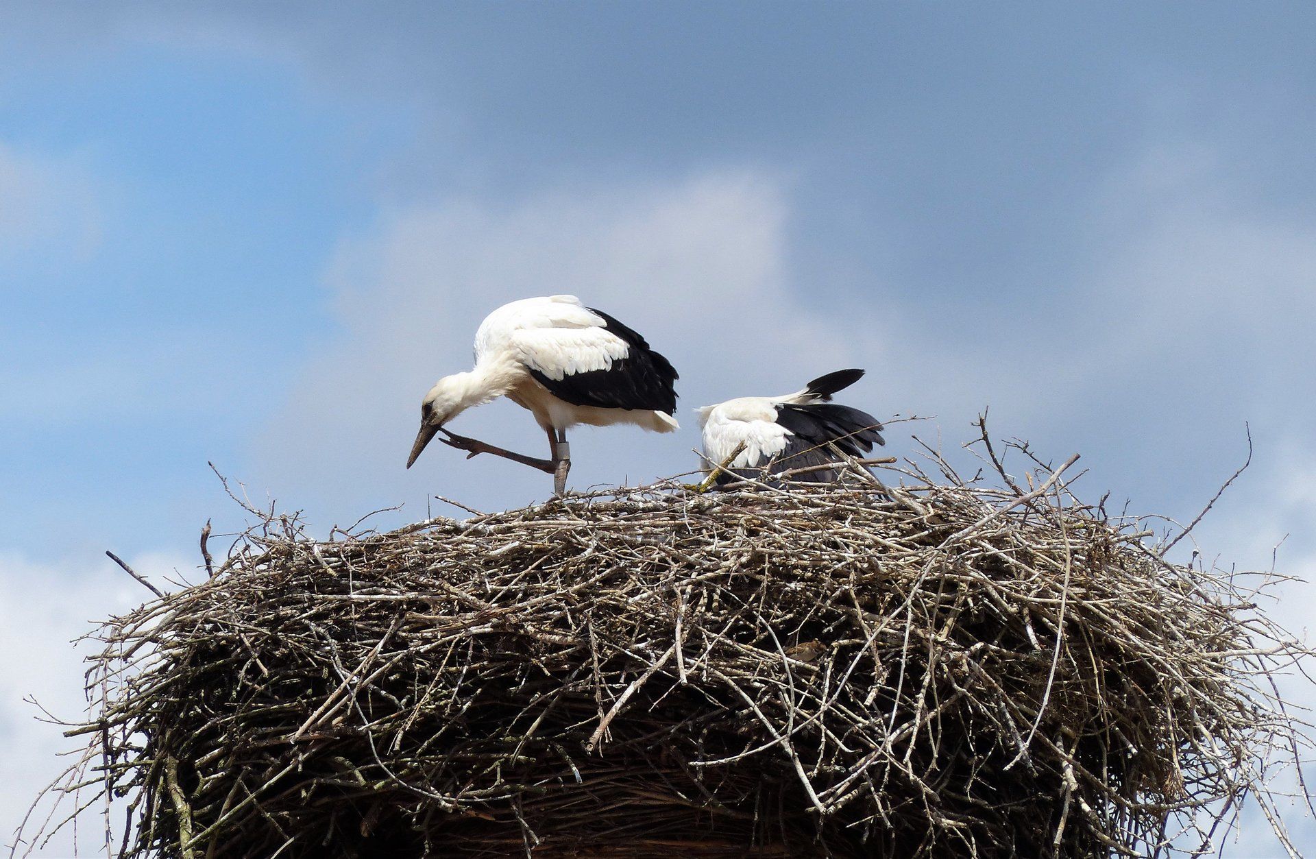 Ein Storchenpaar kann seinem Horst über Jahre treu bleiben, daher ist der Nestbau nie abgeschlossen.