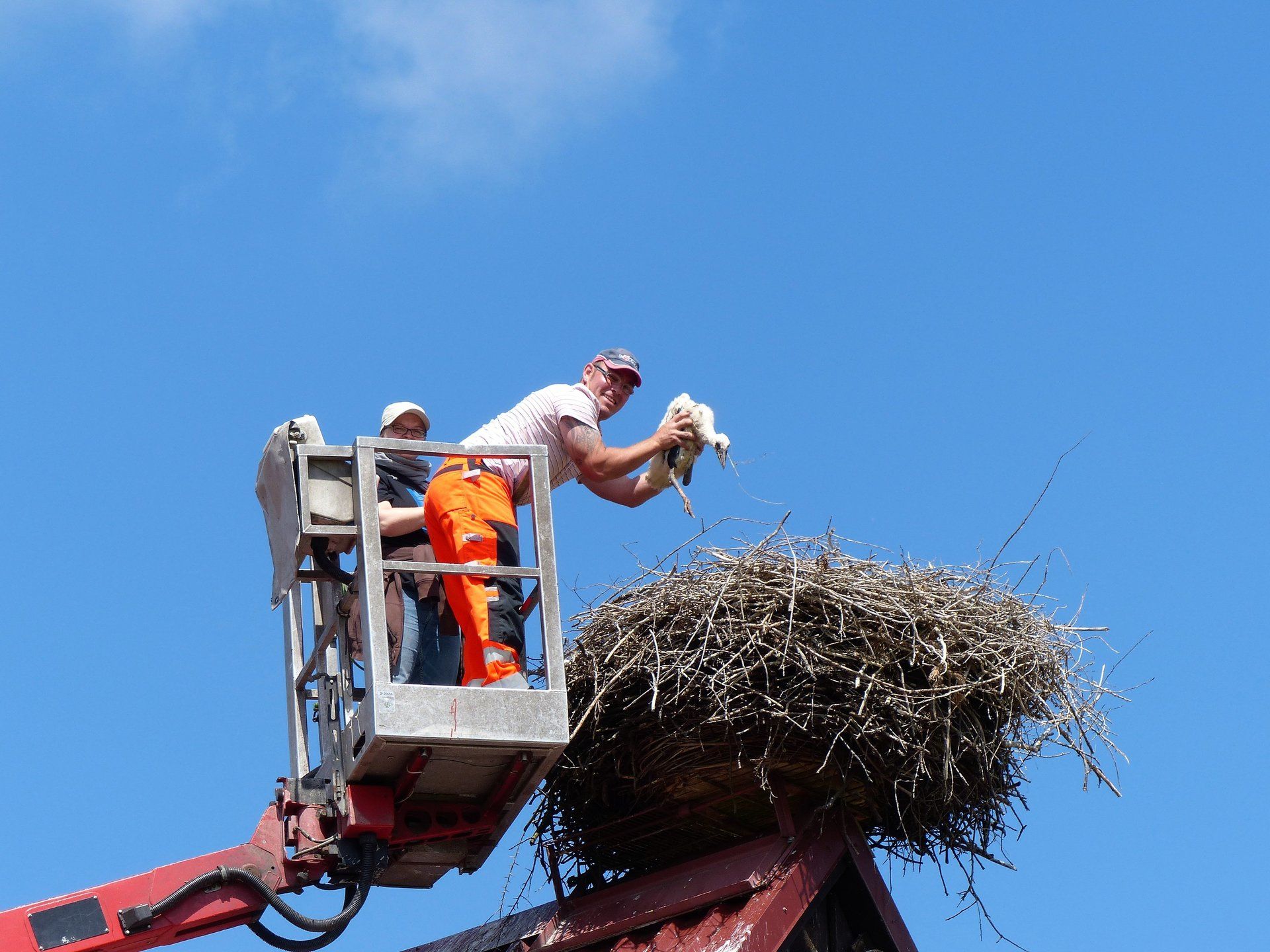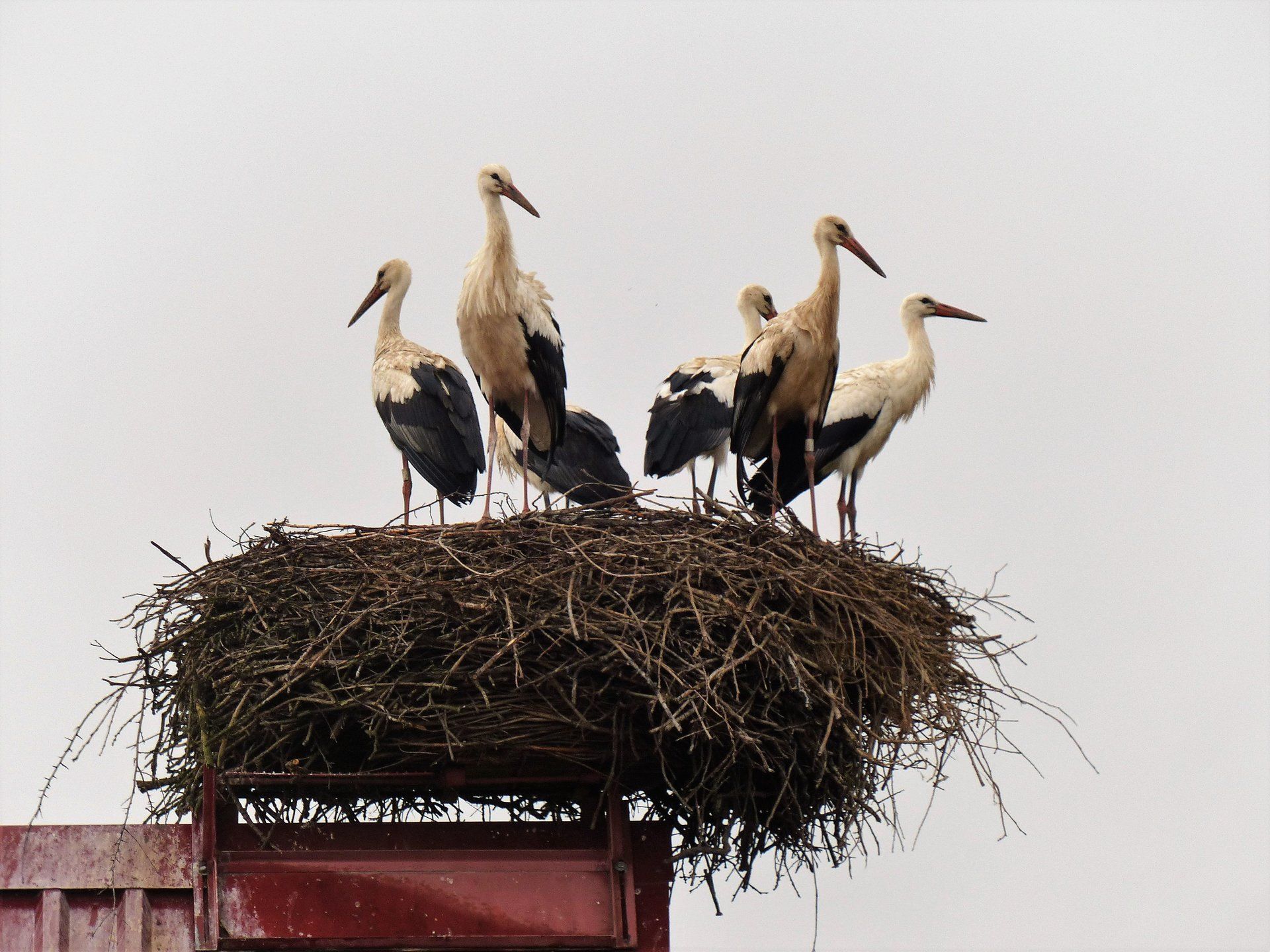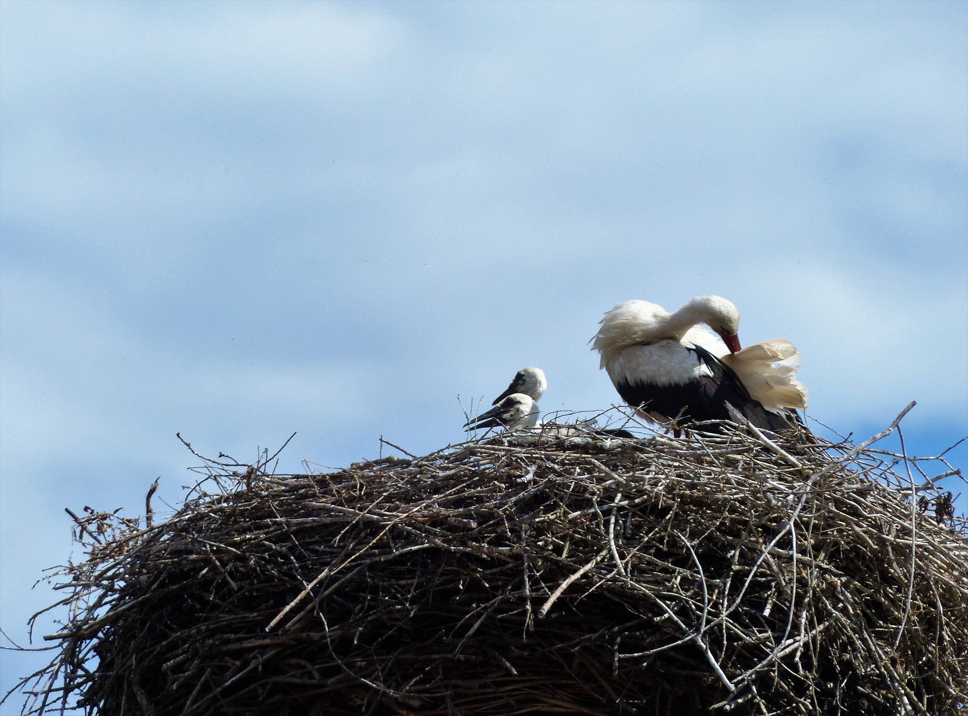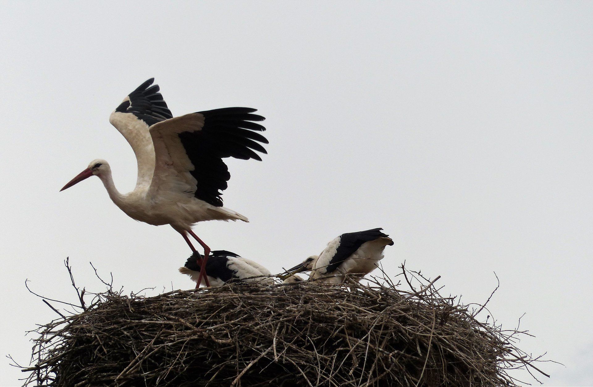 Ein Storchenpaar kann seinem Horst über Jahre treu bleiben, daher ist der Nestbau nie abgeschlossen.