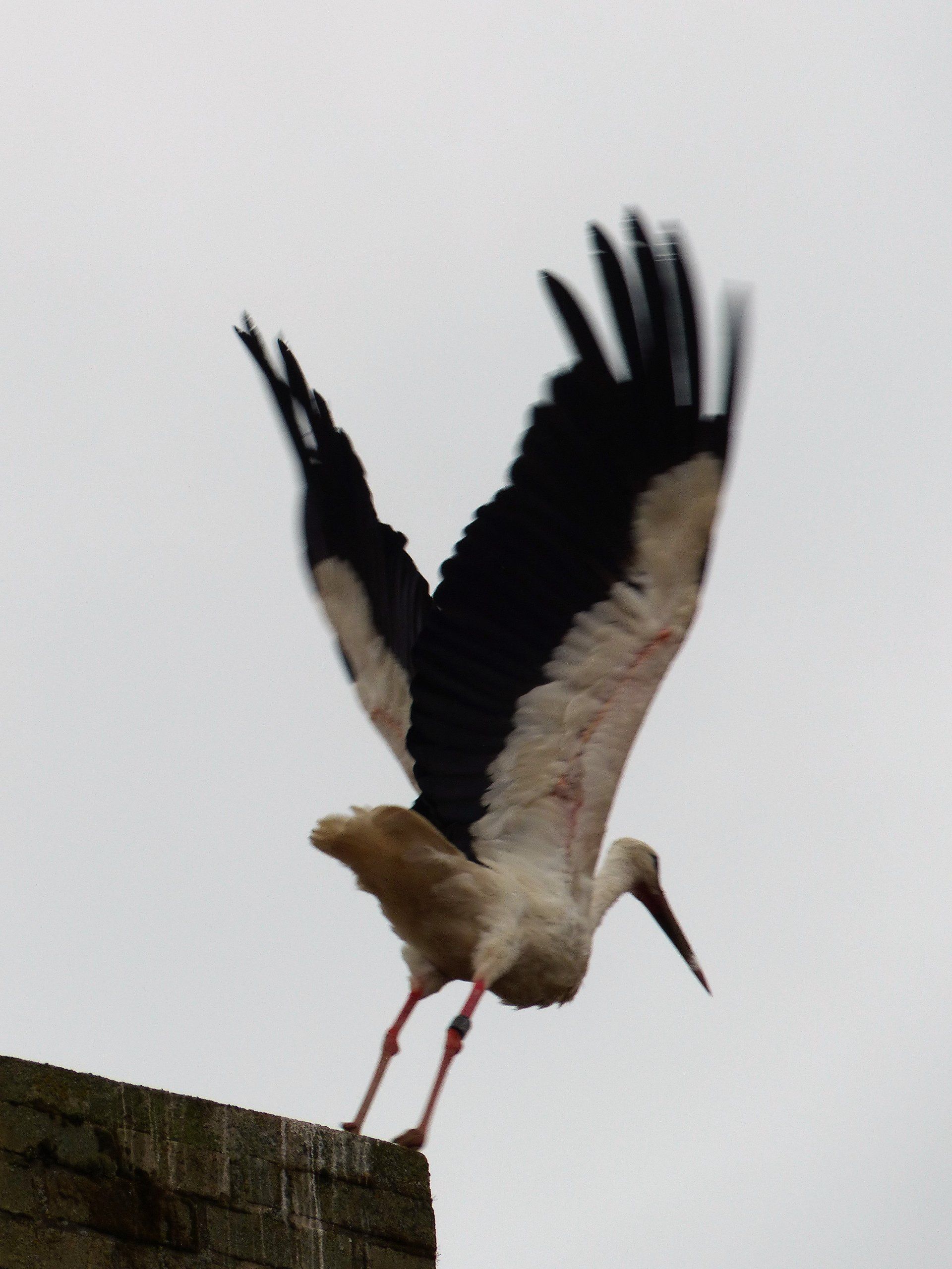 6. April 2016, Ankunft des Weibchen- zur Begrüßung wird geklappert.